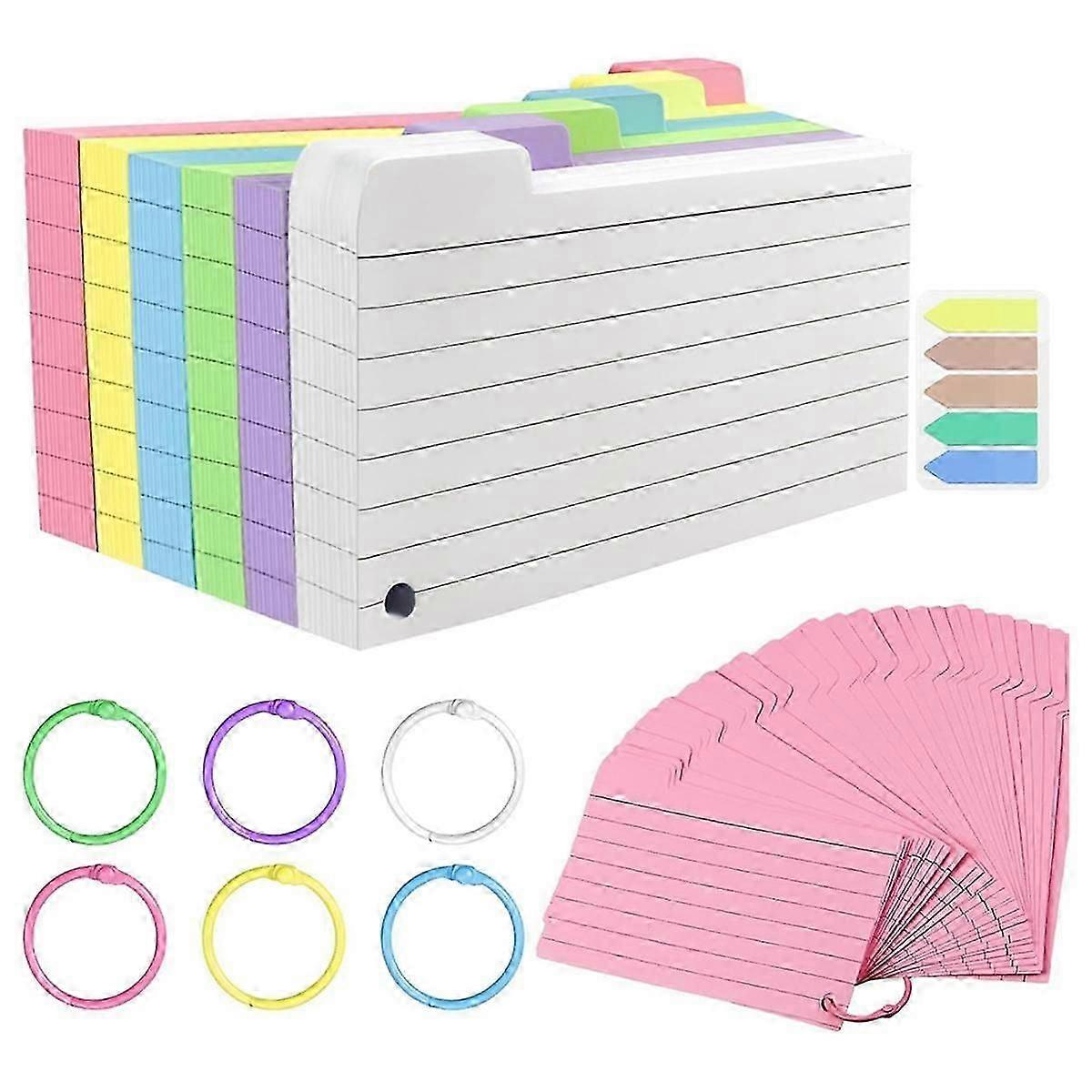 300 Pack Index Cards, 3inch X 5inch Ruled Index Cards With Ring, Colored Lined Flash Cards, Both Sides Note Cards