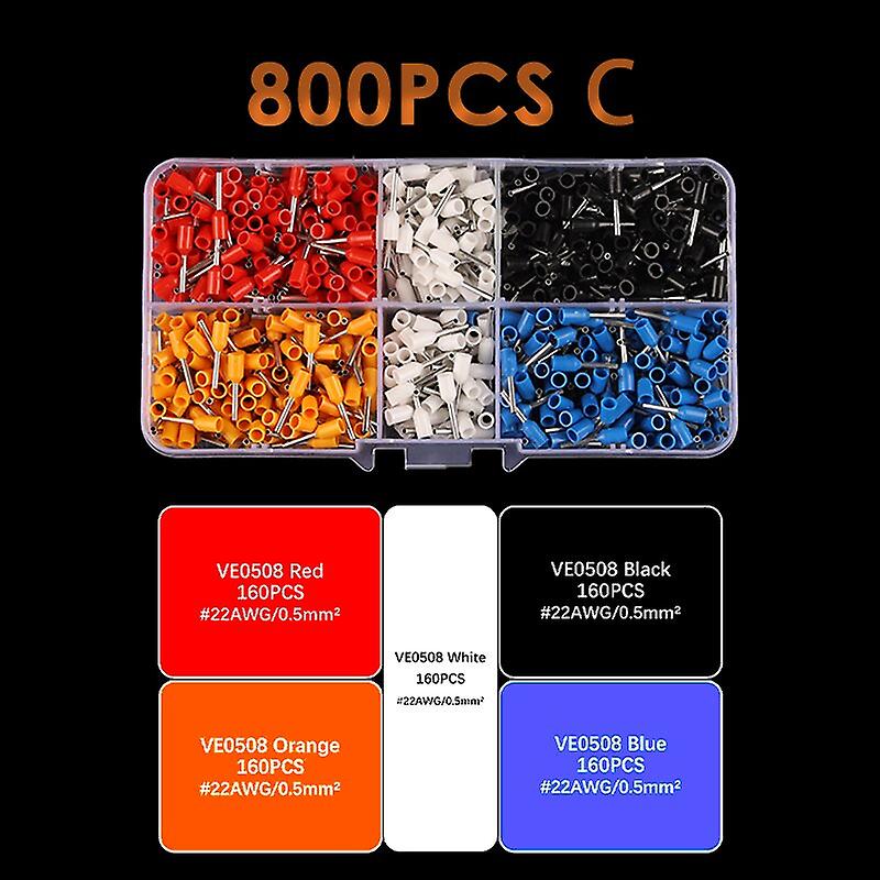 300/800Pcs/boxed Ve Tubular Crimp Terminal Electrical Wire Insulated Terminator Block Cord End Connector Crimping Terminals Kit