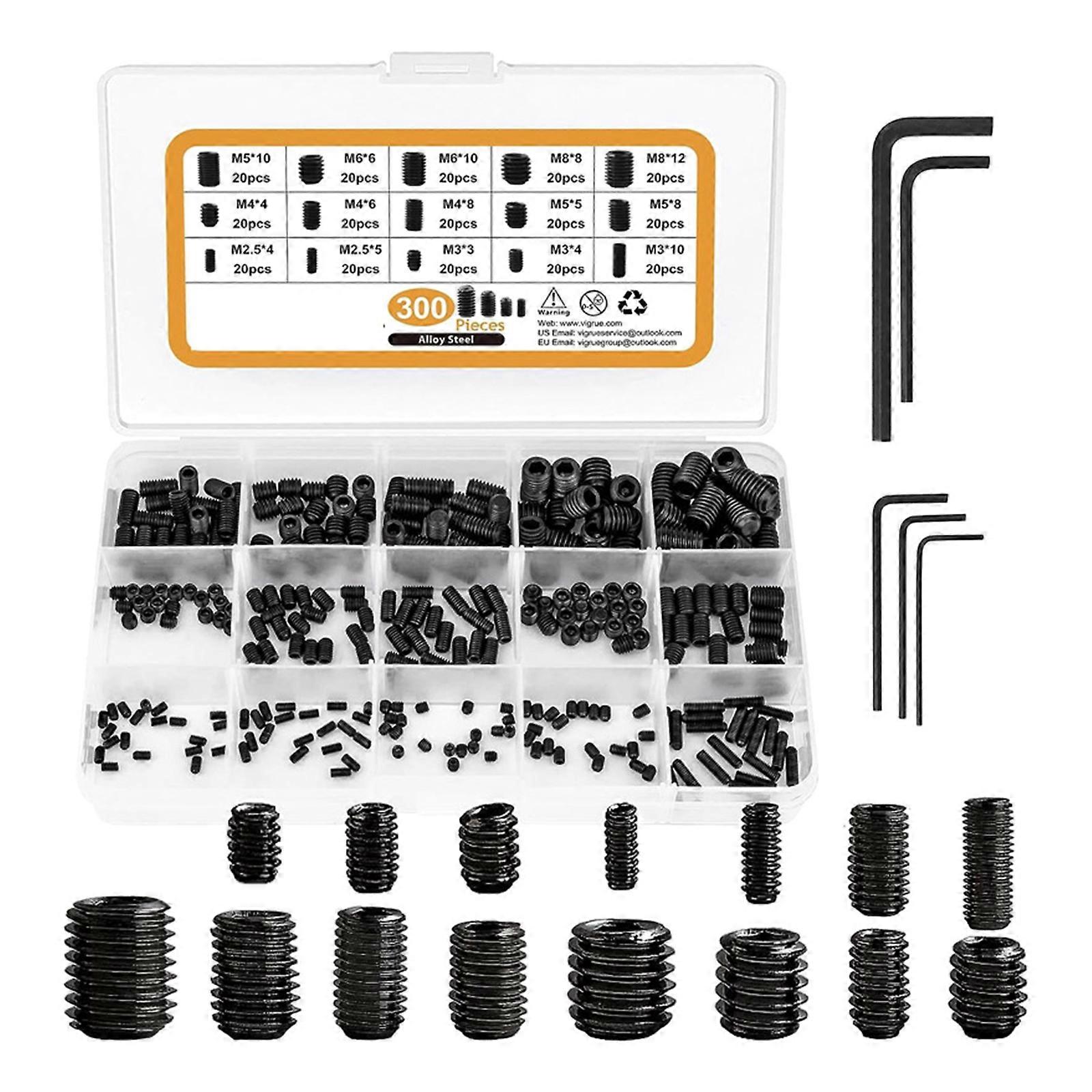 300pcs Allen Head Socket Grub Screw Assortment Kits 2.5/3/4/5/6/8mm Internal Hexagon Drive Cup-Point Set Screws Multicolor
