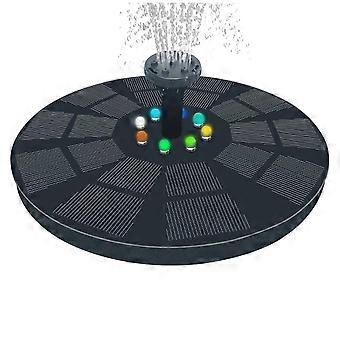 3.0WFloating Sun Fountain Outdoor swimming pools feature floating fountains Features :3.0W solar panel: Solar floating fountain water pump is upgraded from 3.0W quality solar panel, even in very weak sunlight conditions, the water pump can continue to work. High power and battery storage power :3.0W solar pump floating spring 2000mAh battery, LED lamp storage power for night work.Easy to use, just put into the water, under sufficient sunlight for 3 seconds can work automatically, up to 40-60cm.8 different ways of spraying water :8 different nozzles can meet the needs of different jet heights and jet shapes.The height can be adjusted by changing the nozzle to avoid spilling into the basin.You can easily change the sprinkler head. Multi-purpose: this machine is suitable for bird bath, fish tank, small pond, pond, garden, water circulation oxygen supply.Your garden is sure to attract the attention of passers-by.Solar pump decor makes your yard look interesting. Multi-purpose: this machine is suitable for bird bath, fish tank, small pond, pond, garden, water circulation oxygen supply.Your garden is sure to attract the attention of passers-by.Solar pump decor makes your yard look interesting The most unique colored LED light solar fountain :8 LED lights emit colorful light at night (around 7pm or 8pm).RGB automatic cycle setting makes your night more beautiful.Note :LED lighting needs sufficient energy, without which lighting will not work.A single sufficient solar charge can provide four to five hours of light. Safe protection, durable: water shortage protection pump, filter box.Take protective measures when water is scarce.Filter box is more conducive to prevent dirt, dust, leaves, prolong the service life.PET laminated solar panels ensure long-term use in harsh environments. Note: Material: ABS. Maximum spray height :40-60cm(depending on sunshine intensity) Charging time :3 hours Use time: Line length :2.5 meters Maximum flow: 180L /H. Largest head: 1.9m Life : 10,000 hours Delay :3 seconds or less Working hours: 8:00 a.m. to 5:00 p.m Package Contents: 1 solar fountain