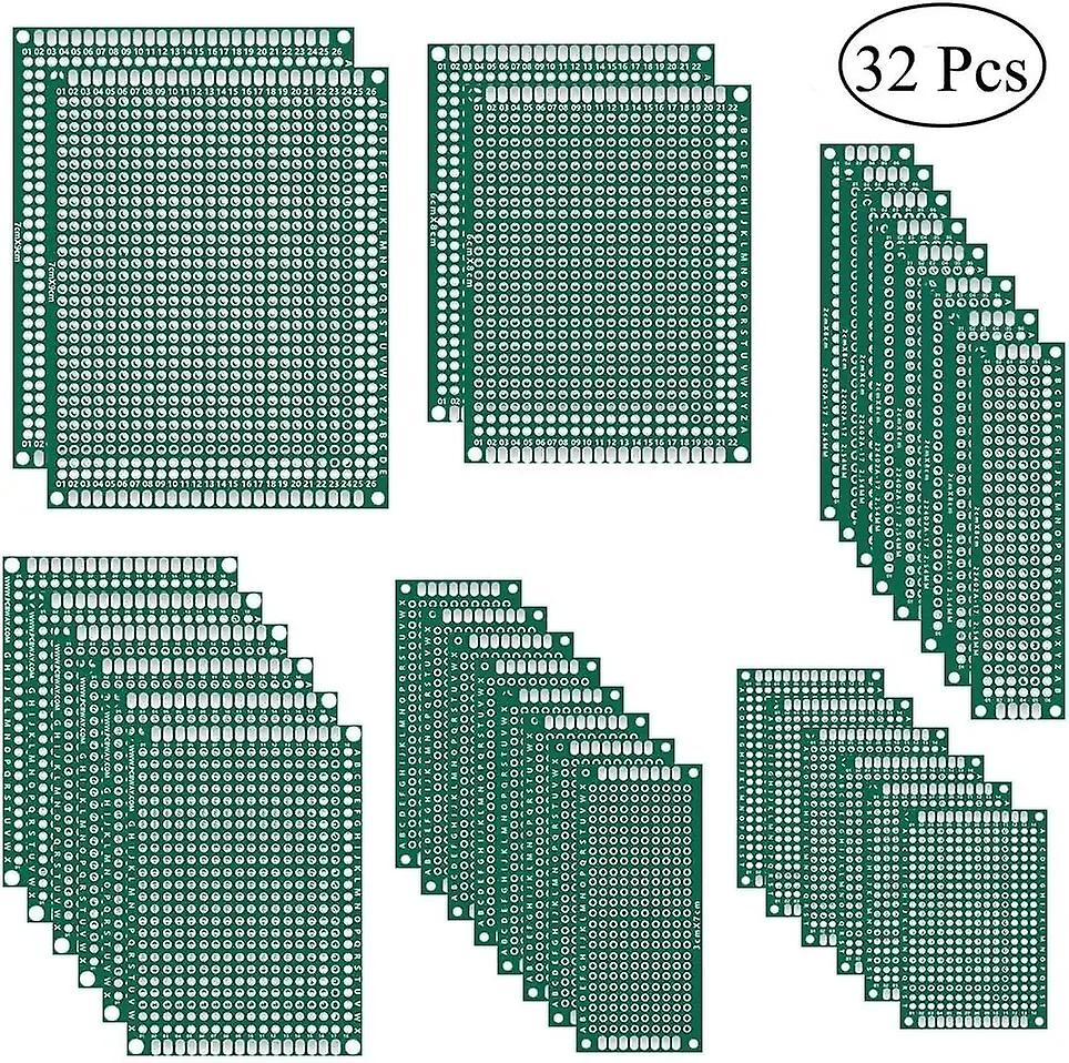 32 Pcs Double Sided PCB Board Prototype Kit 6 Sizes Universal Printed Circuit Protoboard for DIY Soldering Project