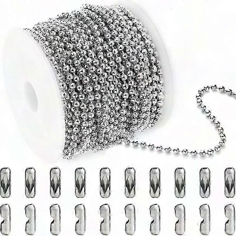 33ft Stainless Steel Bead Chain with 20 Clasp Connectors - Rustproof Pull Chain
