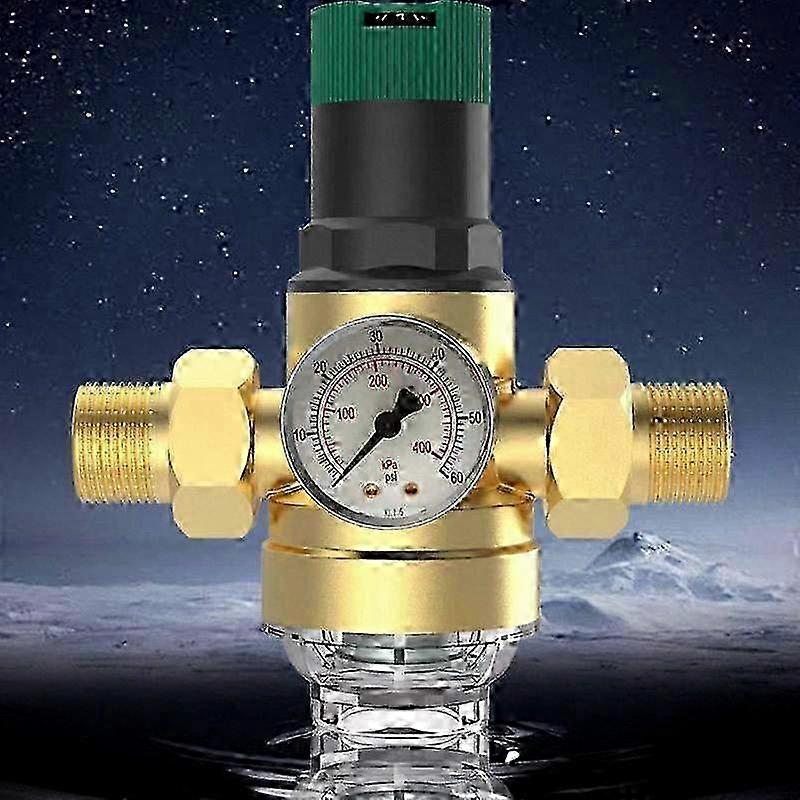 3/4 Inch Water Flow Control Valve with Pressure Gauge and Built-in Mesh Screen for Plumbing Systems