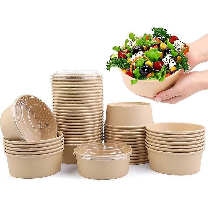 37 oz(1100ml) 50 Pack Paper Round Bowl, Disposable Paper Salad Bowl with , Round Shape Paper Bowls Paper Salad Bowl for Soup Stews Salad F
