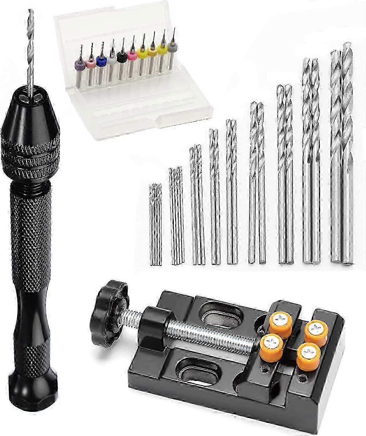 37 PCS Mini Hand Drill Set for Crafts, Pin Vise Precision Twist Drill Bits with Mini Pillar Drill