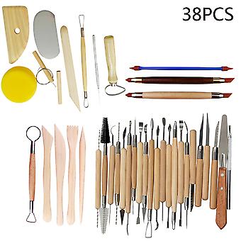 38Pcs Crafts Clay Sculpting Pottery Carving Pottery Ceramic Handle Modeling Tool Diy Wooden Handle Art Clay Pottery Tools