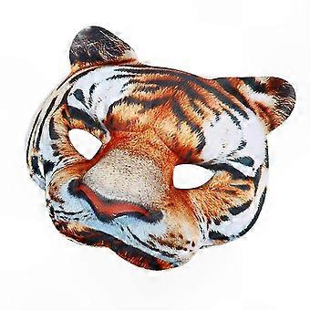 3D Animal Half Face Mask for Halloween Cosplay and Masquerade Parties White Tiger Design with Leopard Pattern