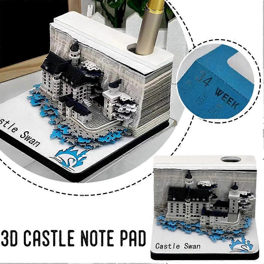 3D Castle Memo Pad , 2025 Desk Calendar Paper Carving Notepad Weekly Notepad
