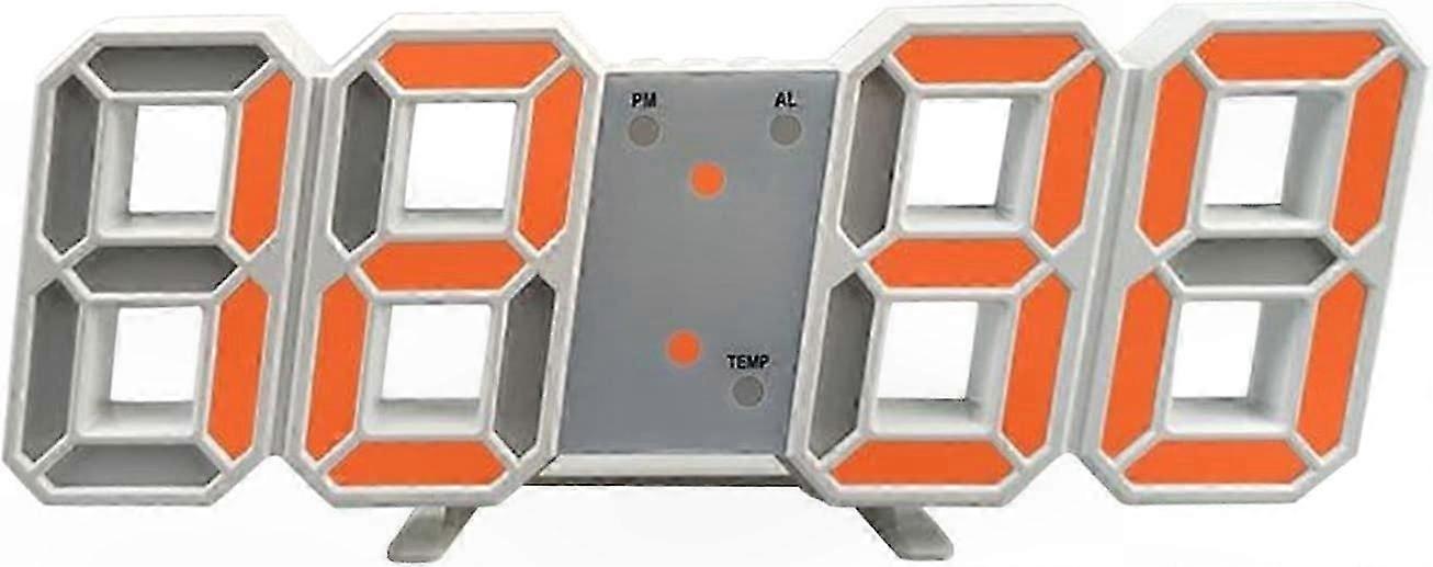3D LED Digital Wall Clock with Smart Stereo Alarm, Snooze Function, Dimmable Display, Time Memory, Nightlight, 12/24H Date and Temperature Display