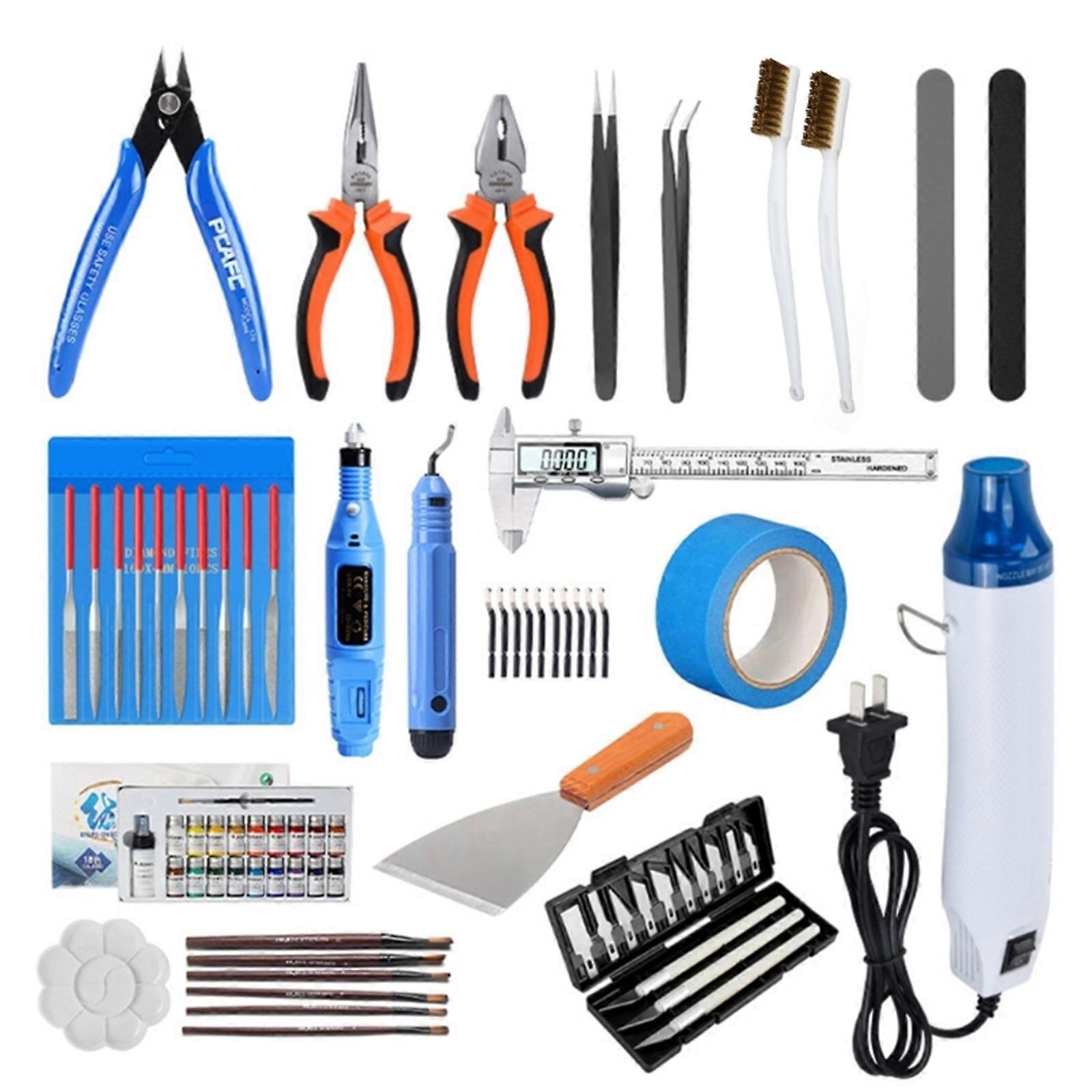 3D Printer Model Cleaning Tool Set Models Grinding Polishing, EdgeTrimming Dismantling Diy Kit Tweezers Pliers Brush Multicolor