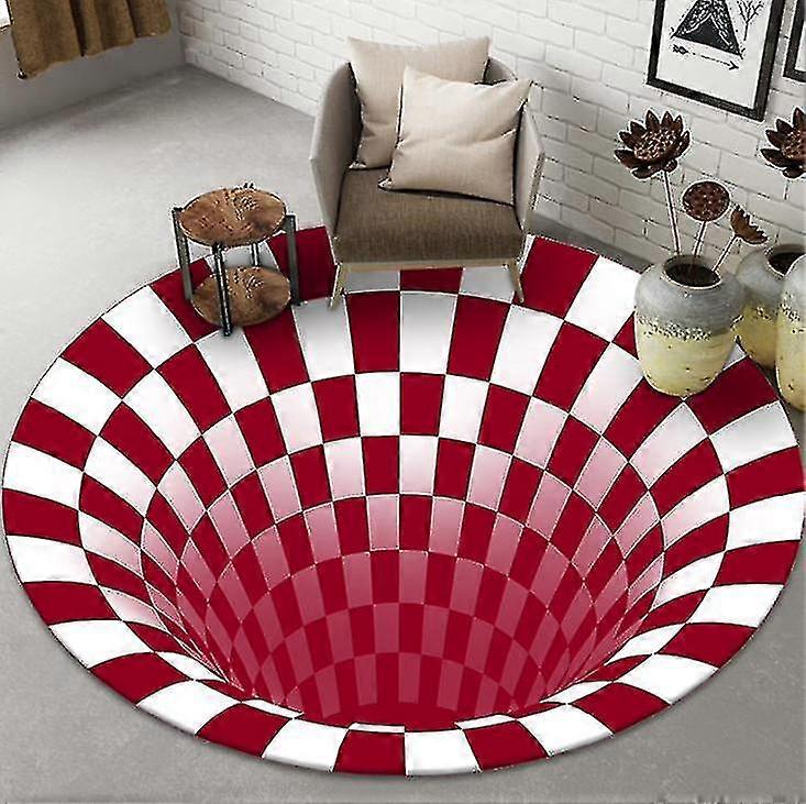 3d vortex illusion rug round carpet non-slip plaid doormat floor pad ns2