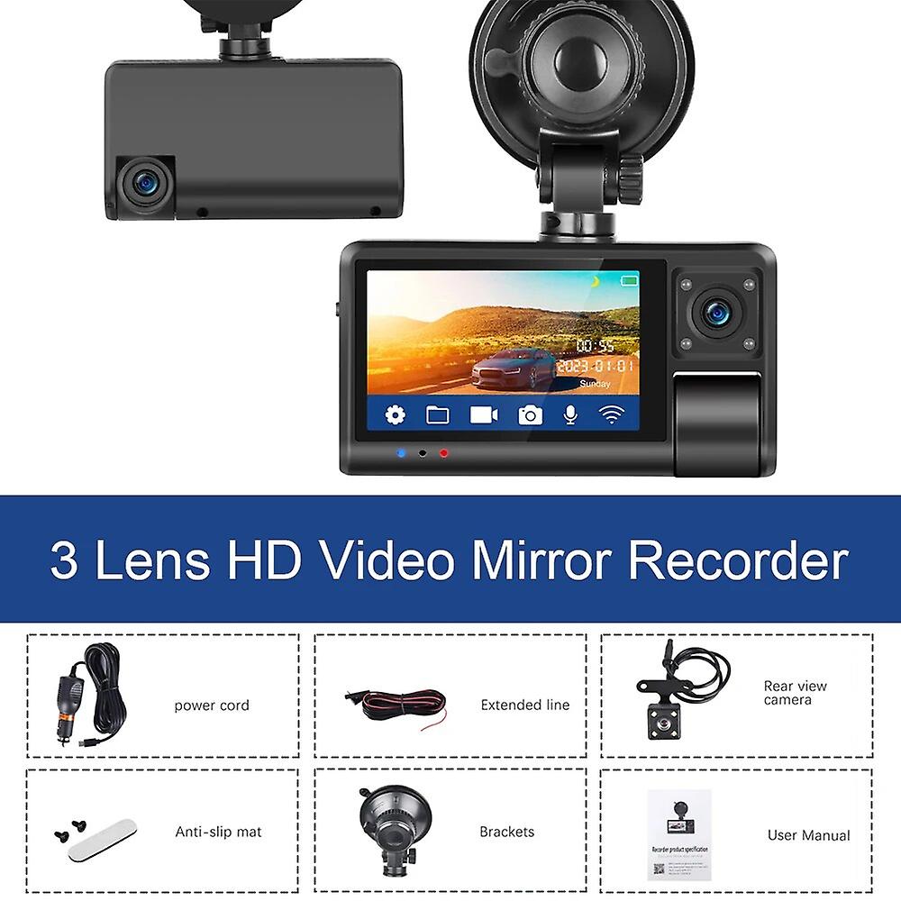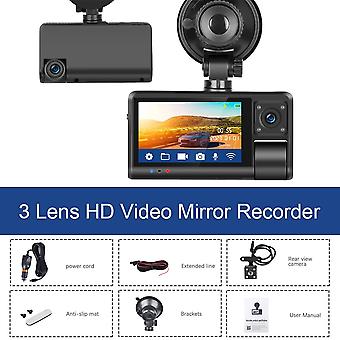3inch Screen Car Dvr 3 Lens Hd Cycle Recording Video Mirror Recorder Dash Cam Loop Recording 3-channel Dashboard Camera
