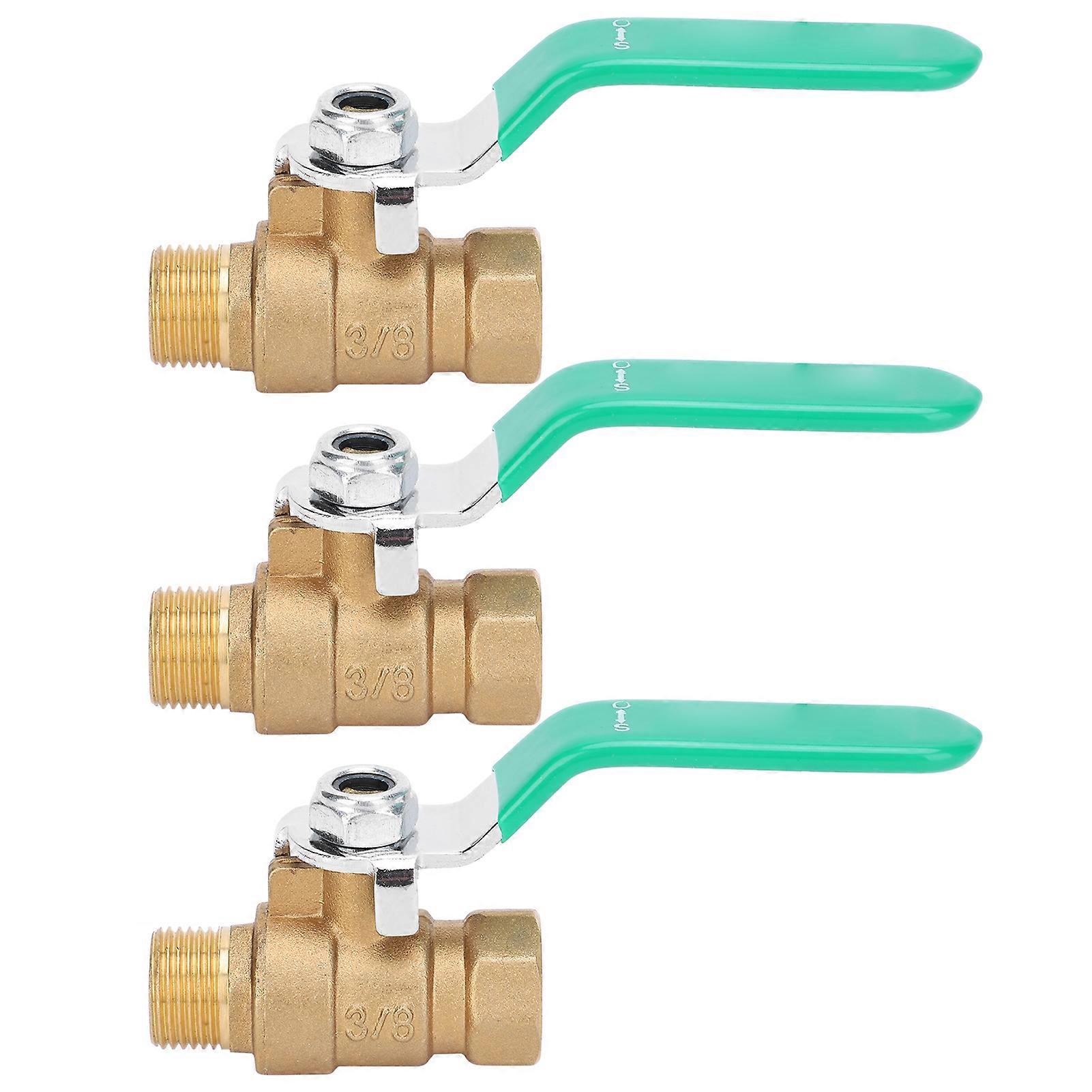 3Pcs Ball Valve Thickened 3/8in Male and Female Thread Water Pipe Tube Shut off Durable Brass Switch