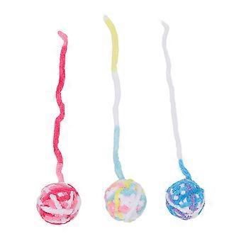 3pcs Cat Plush Ball Interactive Cat Fuzzy Chew Balls With Bells For Indoor Cats Kitten Flower Color