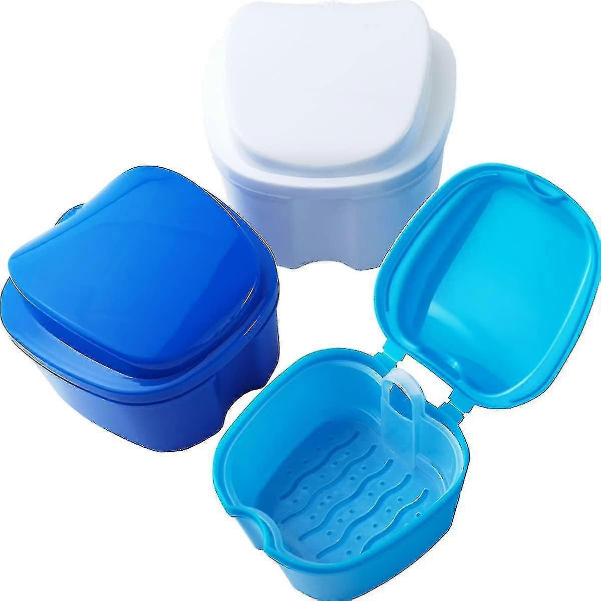 3pcs Denture Case, Denture Cup With Strainer, Denture Bath Box Case False Teeth Storage Box With Basket Net Container Holder For Travel