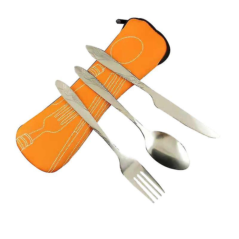 Durable, stainless steel 3 pieces cutlery set (spoon, fork, knife). Great for traveling. With a carrying case, this flatware set is convenient to carry in a backpack or purse. They are corrosion-free and rust-less because of using the material of stainless steel, keep shiny for long time. Handy for office, car, esky, camping, scouts, caravan, holidaying and more. Features - Color: Orange - Material: Stainless Steel - Size: 17.8 x 0.8 x 0.3 cm - They are corrosion-free and rust-less because of using the material of stainless steel, keep shiny for long time. - Durable, stainless steel 3 pieces cutlery set (spoon, fork, knife). it is an environmental protection way to use reusable tableware. . - With a carrying case, this flatware set is convenient to carry in a backpack or purse. - Handy for office, car, esky, camping, scouts, caravan, holidaying and more.