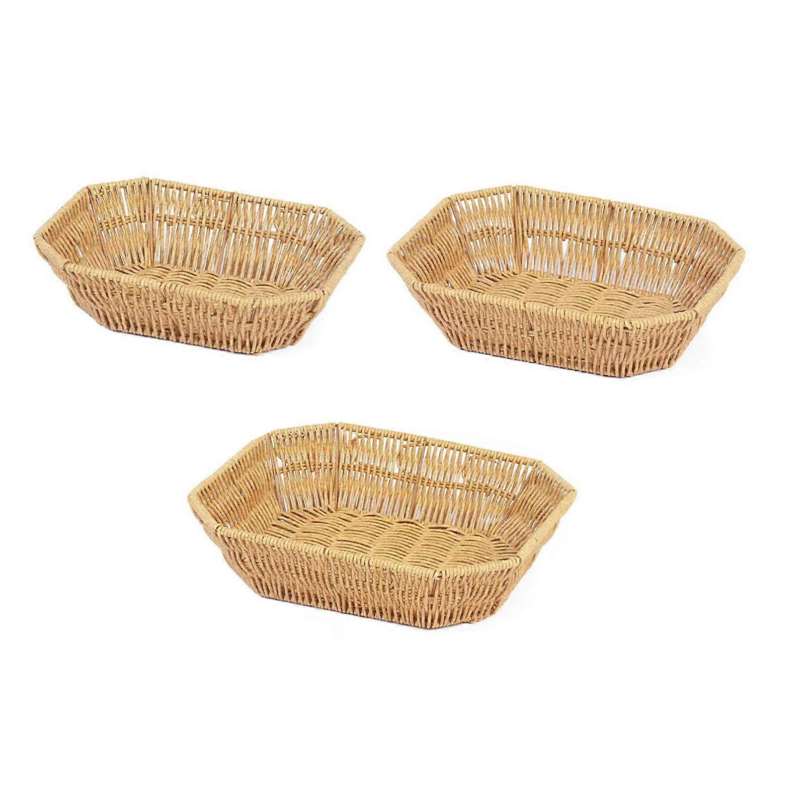 3pcs Imitation Rattan Fruit Serving Basket Multifunctional Octagonal Snacks Storage Plate Woven Vegetable Display Tray Multicolor