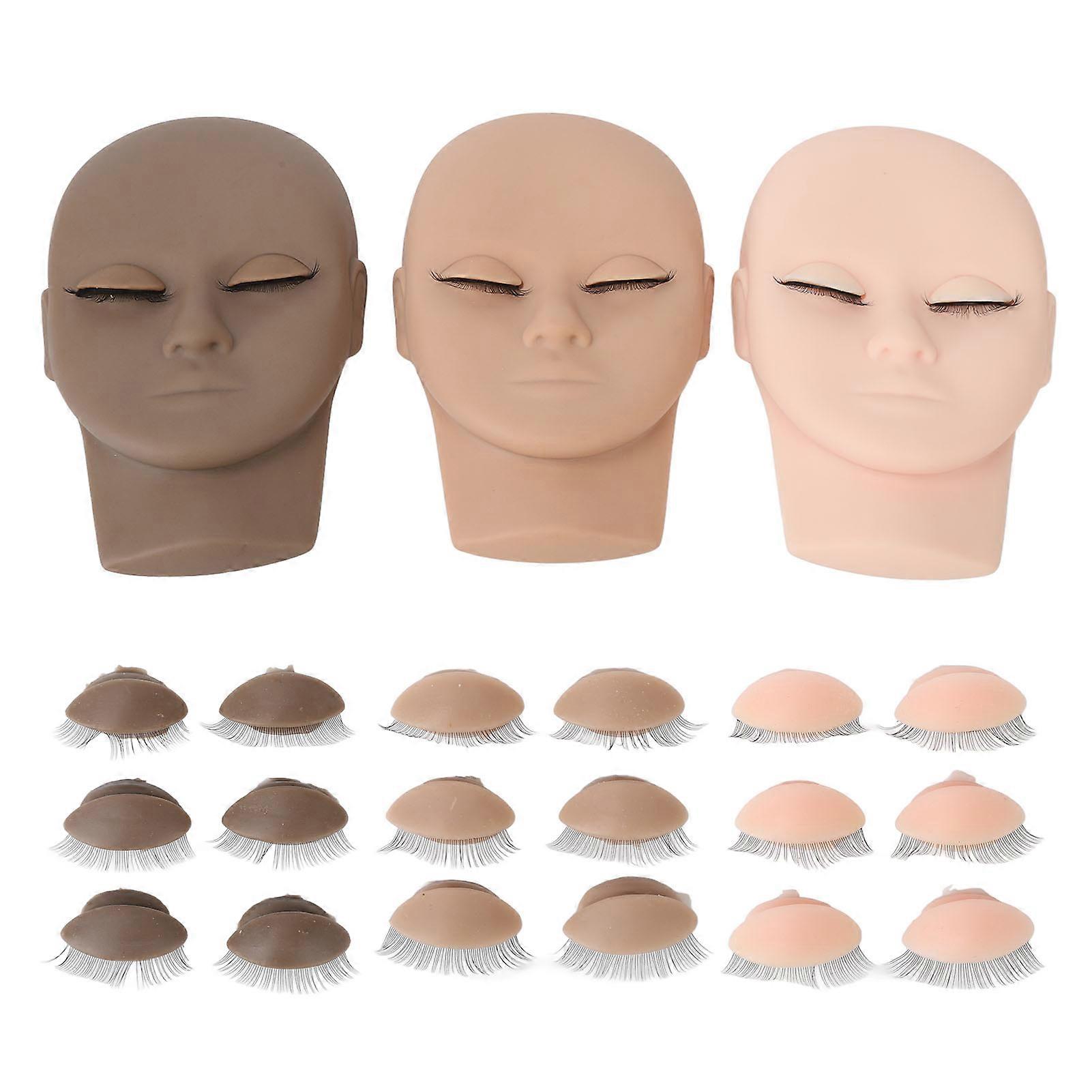 3pcs Lash Mannequin Head Makeup Eyelash Extension Practice Doll Head With Removable Eyelids Double Layer Lashes