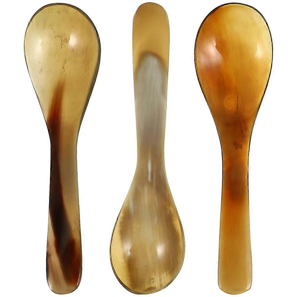 3pcs Natural Horn Coffee Spoons – Compact Dessert Spoons for Cake, Coffee & Kitchen Use – Smooth Surface, Long Multi Colored Design