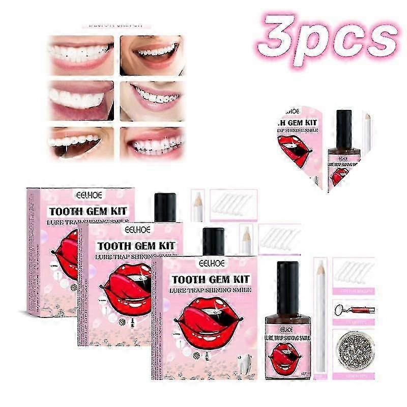 3pcs Shiny Crystal Tooth Art Gems For Nails, Clothes, Face, Craft