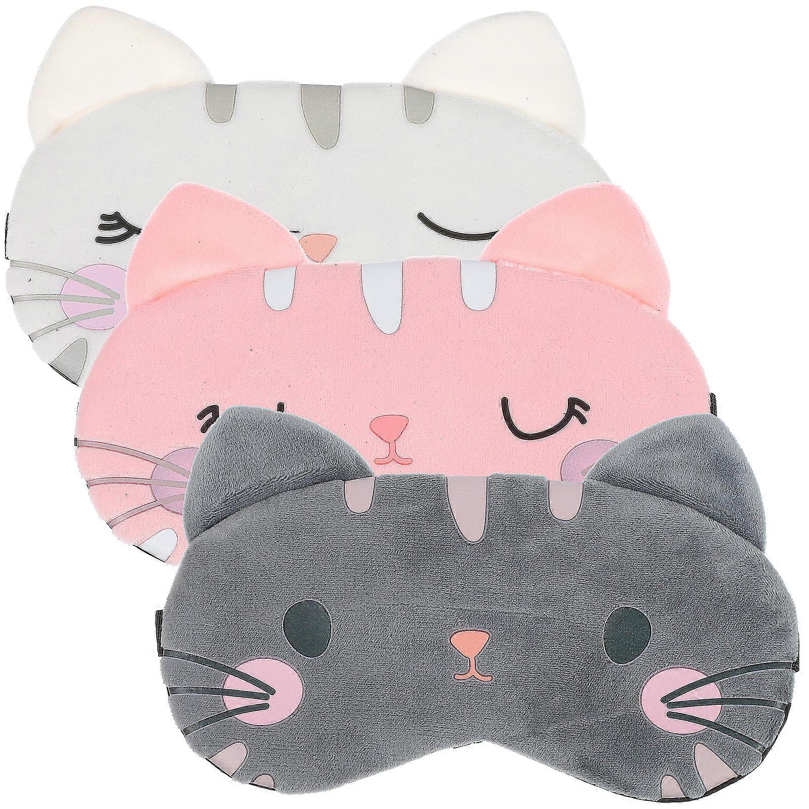3Pcs Sleep Mask Cartoon Cat Sleeping Mask Blindfold Eye Covers with Elastic Strap for Light Blocking