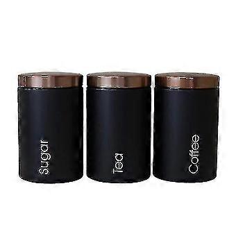 3pcs Stylish Tea Sugar Coffee Storage Canisters With Lid |storage Bottles Jars(black)-YuJia