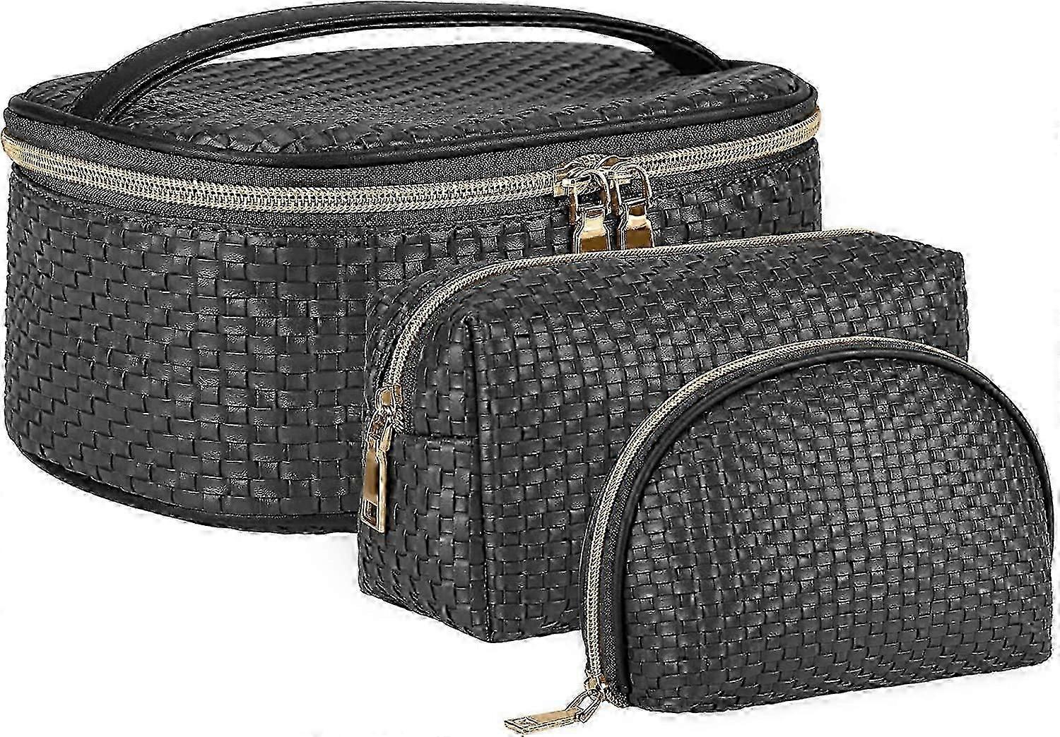 3-piece toiletry bag3 different styles and sizes of toiletry bag to meet your different needs. High quality materialsThese makeup bags are made of high quality PU leather. quality and have woven texture, sturdy, water resistant, scratch resistant, shiny metal double zippers and wide handle design for easy portability. Large Capacity Makeup BagThis toiletry bag set is large enough to hold your day-to-day makeup. Perfect Travel Makeup BagThe makeup bag is small, lightweight, easy to carry and large enough to hold your items bag. Multifunctional makeup bagsThese makeup bags can store not only cosmetics, but also jewelry, electronic accessories, cameras, essential oils, toiletries, cosmetics, etc. shaving supplies, valuables , etc.