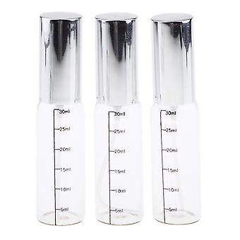 3Pcs Transparent Empty Glass Spray Bottle with Scale for Perfume Silver