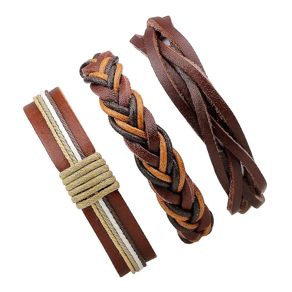 3pcs/lot Brown Woven Leather Bracelet
