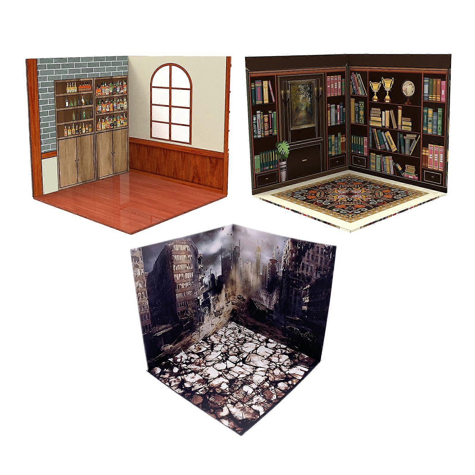 3x 1/12 Scale Action Figures Display Backdrops, Diecast Car Dolls Scene,