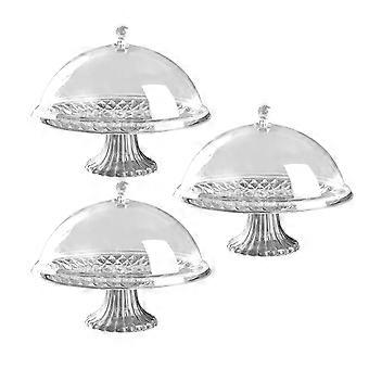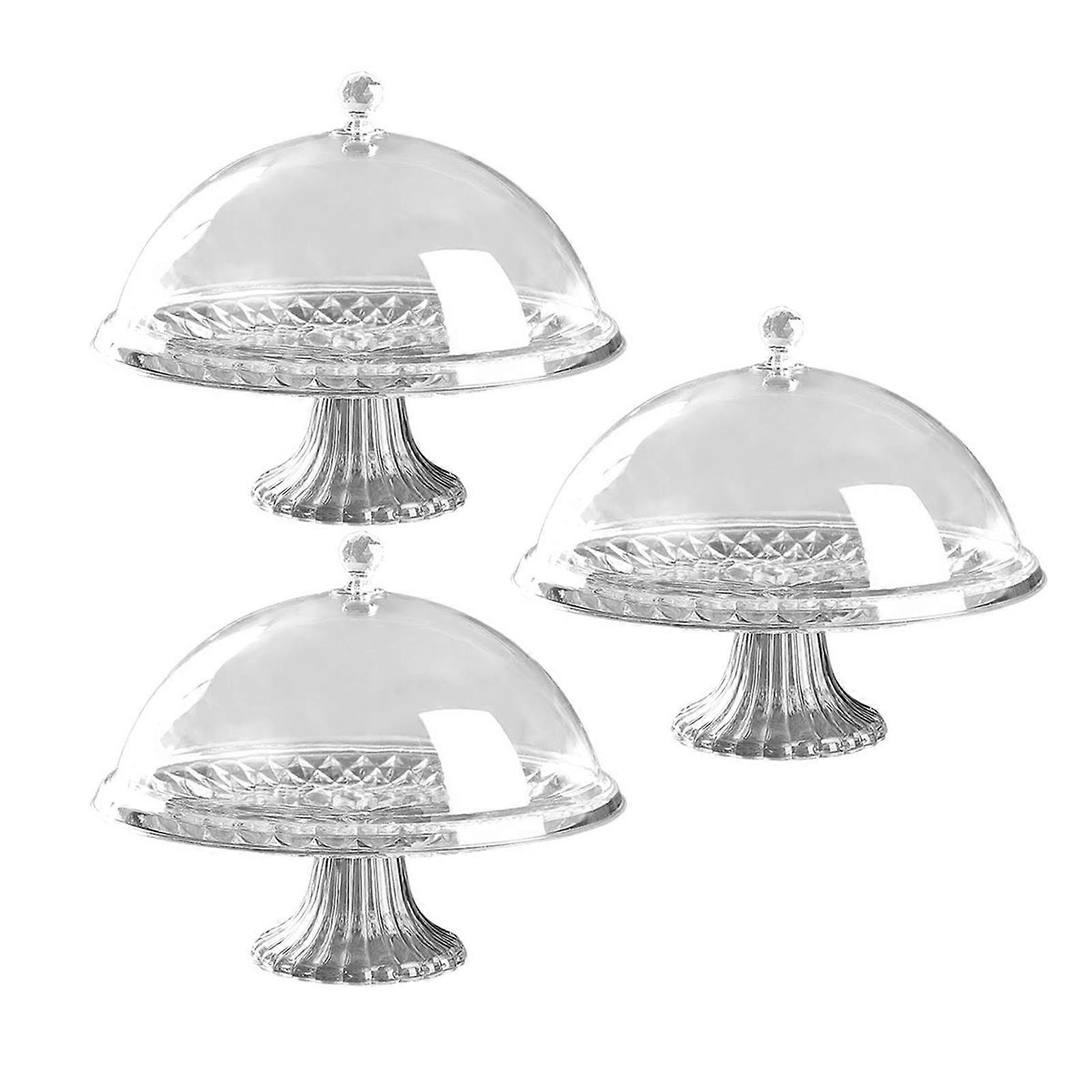 3x Cake Plate with Lid, Dust Proof Transparent Portable Drop Resistant Cake
