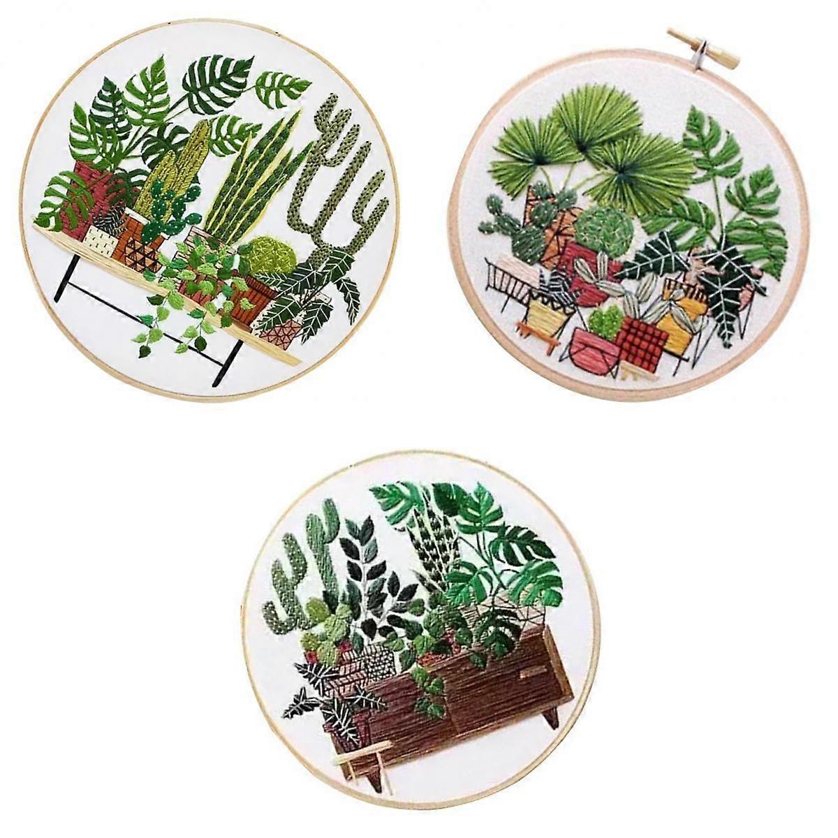 3x Embroidery Starter Kits for Adults ,with Stamped Pattern,