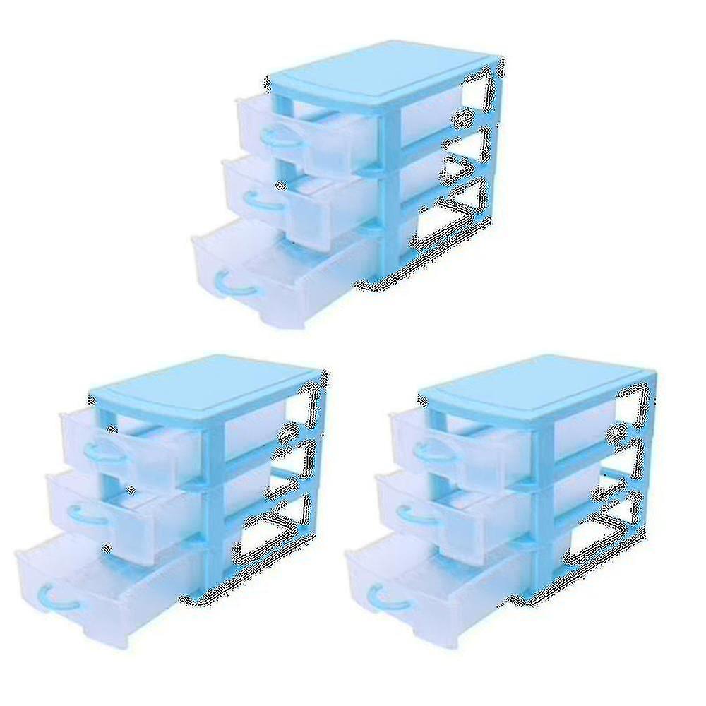 3x Mini Translucent Drawer Type Plastic Storage Box(blue 3 Layers)