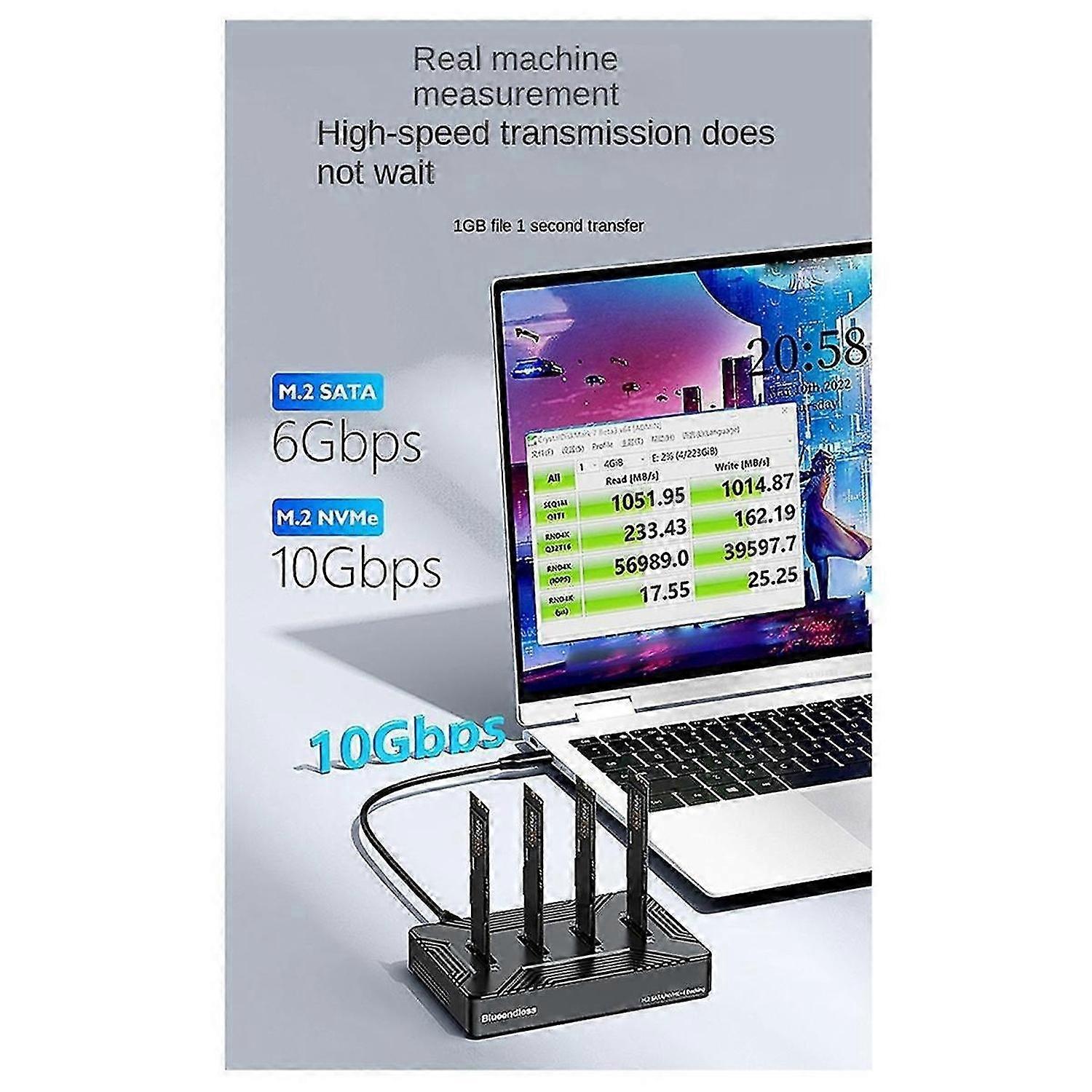 4 Bay M2 SSD Box Type C USB3.2 10Gbps M.2 NVME SATA Ngff Dual Protocol Aluminum Alloy SSD Enclosure EU Plug