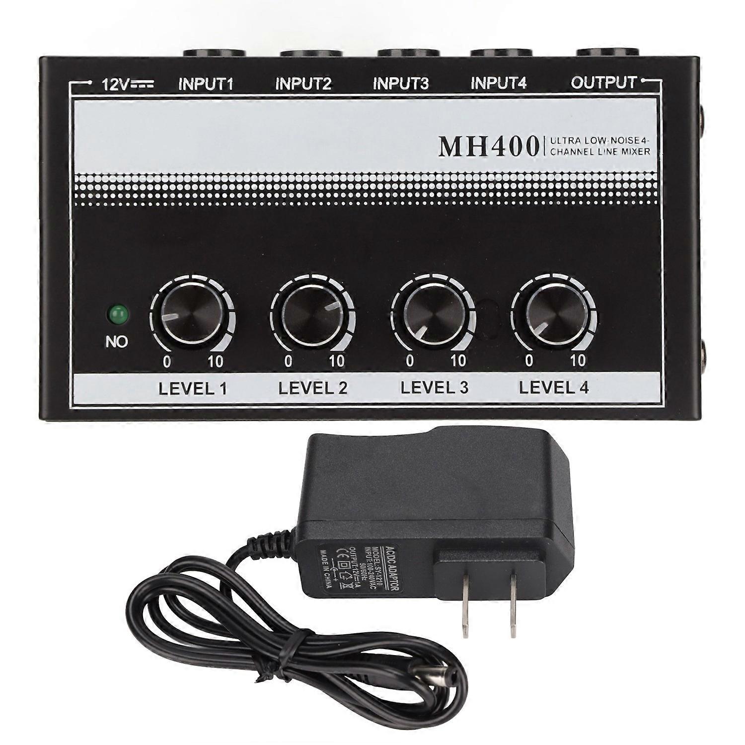 4 Channel Line Mixer Compact Stereo Low Noise Portable Line Mixer for Clubs and Bars 100‑240VUS Plug
