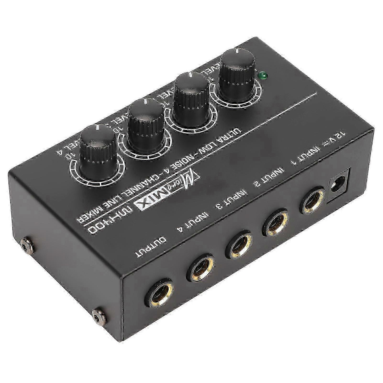 4 Channel Line Mixer Stereo Compact Low Noise Adjustable Volume Sound Mixer Suitable for Clubs and Bars 100-240V EU Plug
