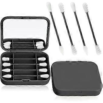 4 Count Reusable Silicone Cotton Swabs Portable Last Swab for Ear Cleaning Makeup for Women, 2 In 1 Cotton Swabs Set with Case and Cosmetic Mirrors