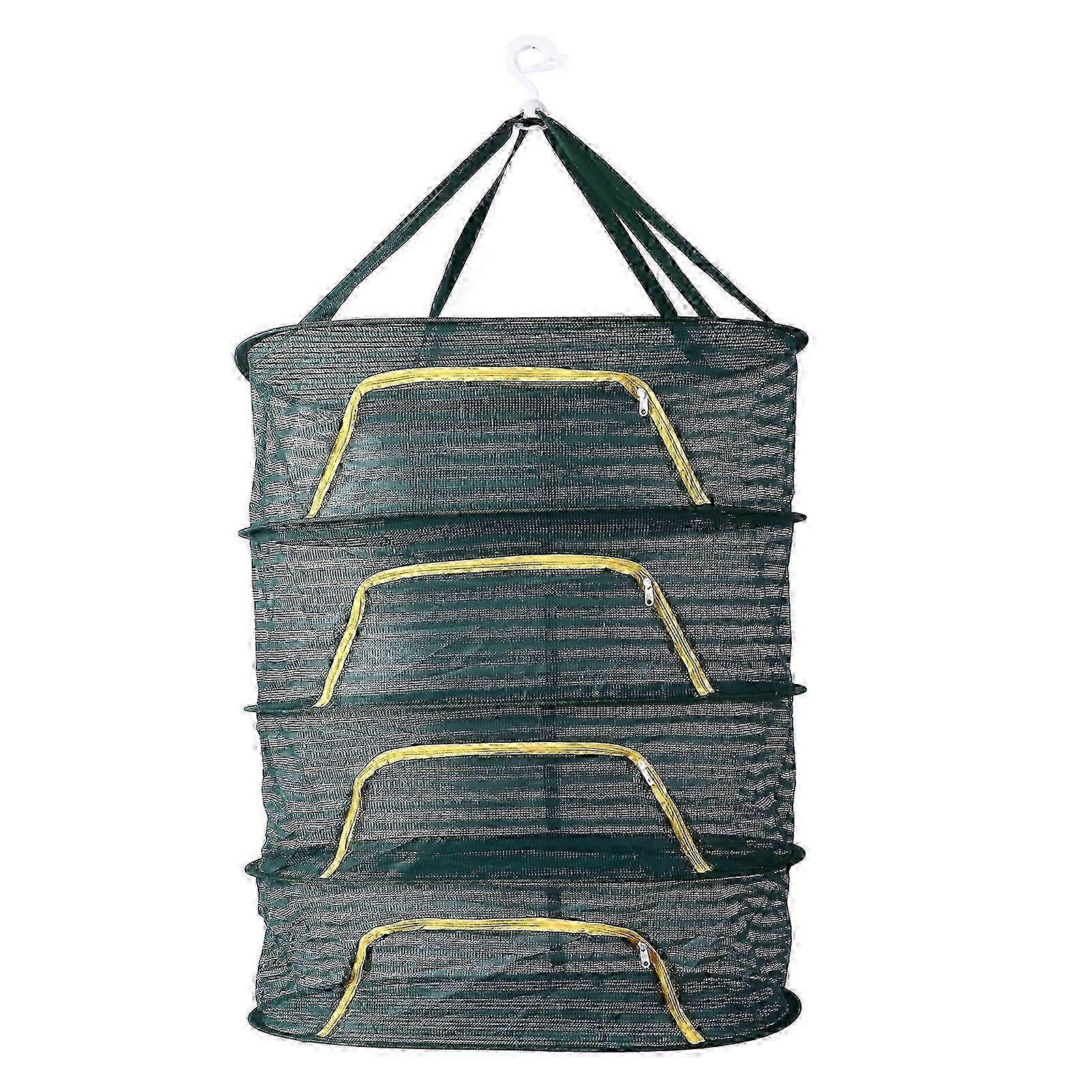 4-Layer Foldable Herb Drying Rack with U-Shaped Zipper, Dark Green Fine Mesh for Kitchen & Gardening