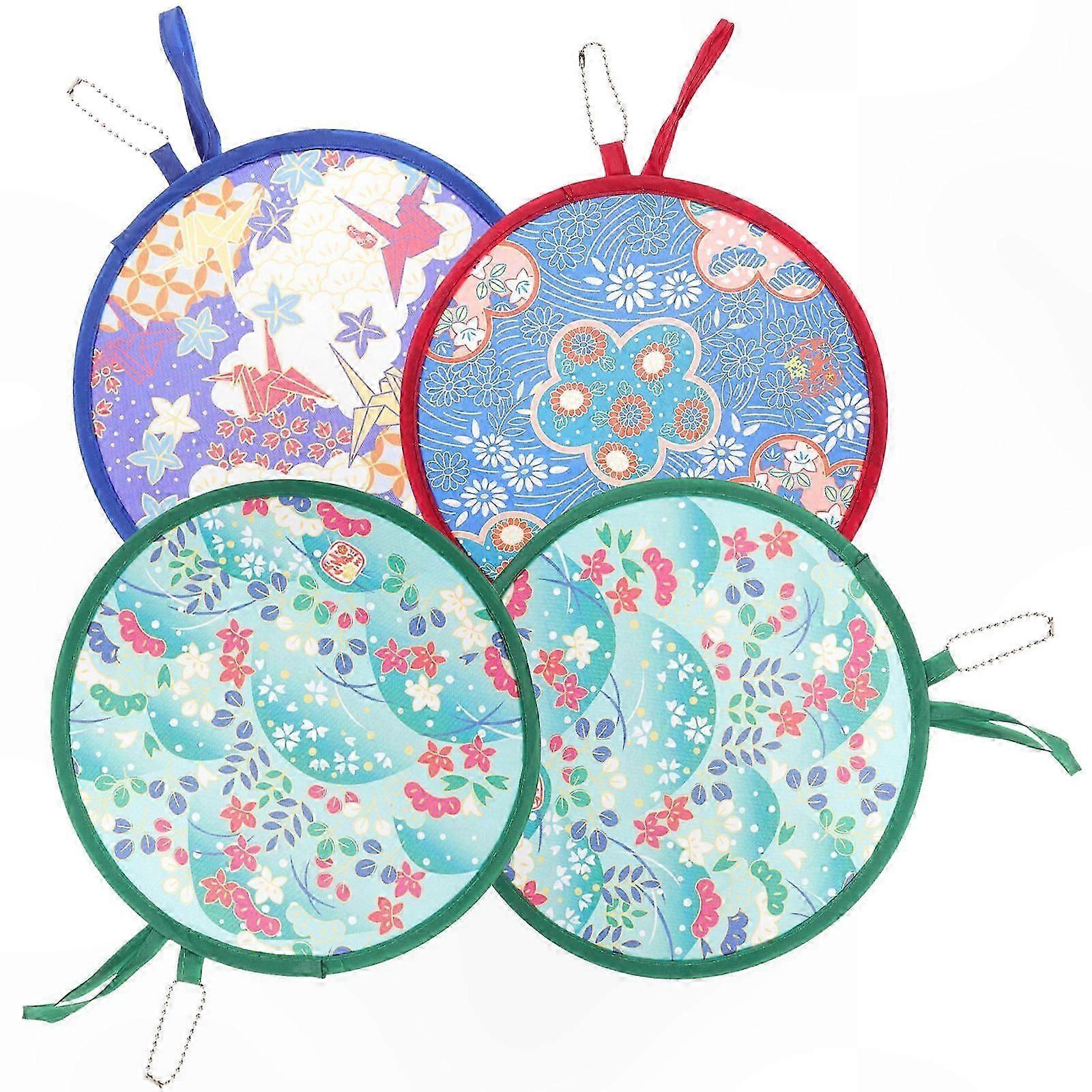 4-Pack Foldable Round Hand Fans, Multi-Color, Classic Dance Performance Accessory for All Ages