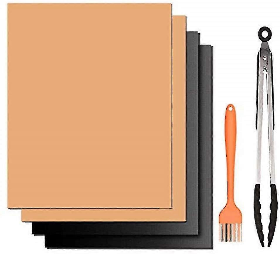 Top Quality Materials:4 Pack of heavy-duty Non Stick oven liner for bottom of electric oven that fit most standard-sized ovens and can be trimmed for a custom fit. it can be cut to size to fit inside all ovens with bases, our mat can be cut to any size or shape to fit any need. .100% NON-Stick, Easy To Clean & Reusable & Durable When you finish the Baking, you just need to wash it with clean soapy water and dry it, or put directly into the top rack of the dishwasher for cleaning, saving your cleaning time. .Multi - Purpose Use Can serving as nonstick oven liners, pan liner, barbecue grill mat, baking mat, cooking mat. Perfect for any home conventional ovens. .KEEP YOUR OVEN CLEAN - Save time and energy cleaning your oven for use our Non Stick Oven Liners. These heavy-duty oven mat for bottom of oven are the perfect solution to keep your oven mess and spill free. It catches cheeses, sauces and other baked-on messes that drips on the bottom of your oven. .6 IN 1 Set: This Package includes 2Pcs Black Oven Cooker Liner + 2Pcs Copper BBQ Mats + 1Pc Silicone Toog+1 Pc Silicone Brush. Come with 100% Satisfaction Guarantee. .