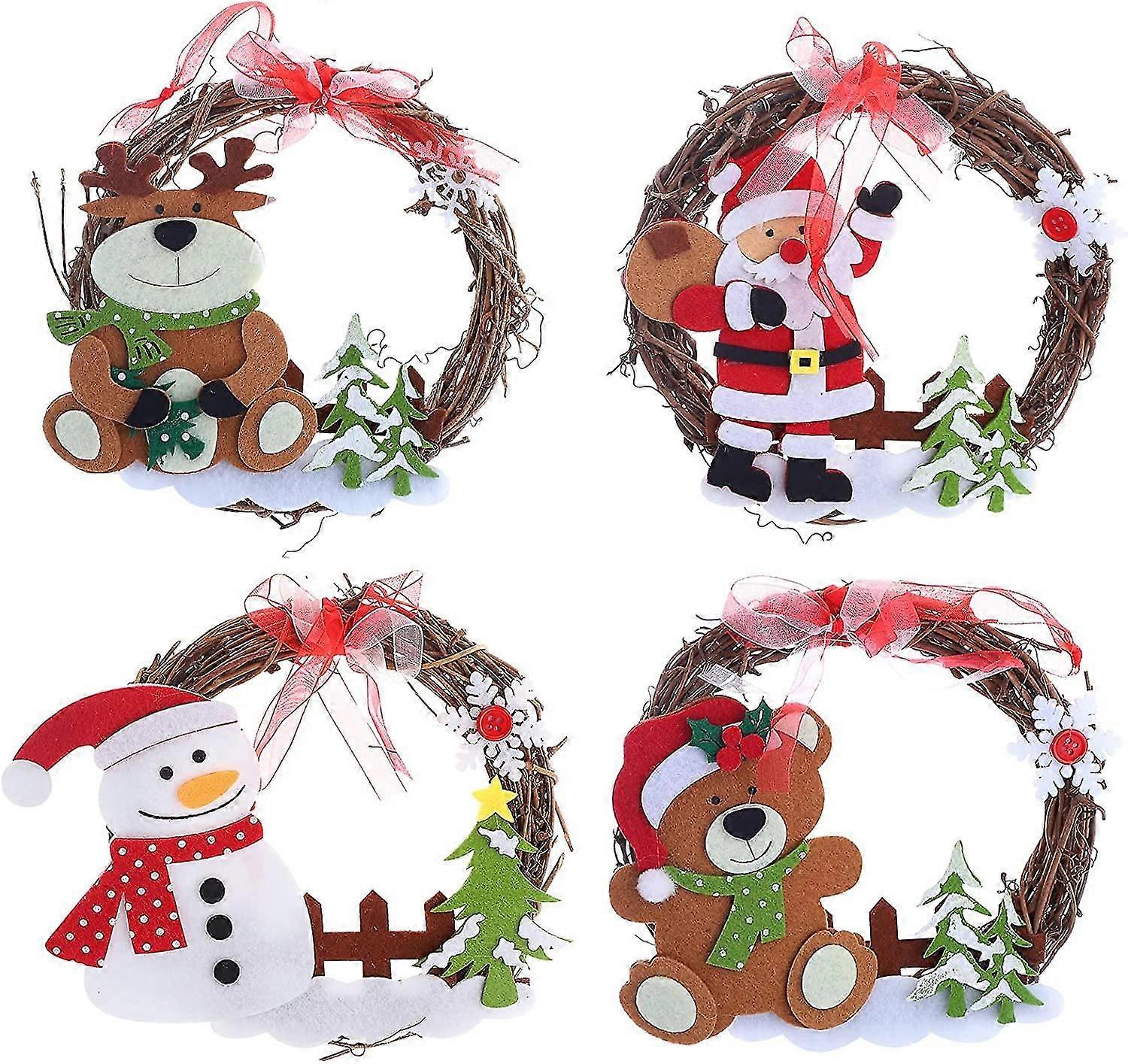 4 x Christmas Wreath Decorations Holly Wreath for Doors Hanging Door Wreath Decoration Artificial Design Festive Wreath DIY Craft Natural Vine Wreath Christmas Dried Rattan Wreath Ring Christmas Wreath Door Garland for Christmas Holiday Indoor Home Decor Specifications: Colour: as shown. Size: as shown in picture 2. Material: wood Quantity: 4 pieces. Package contents: 1 x Santa Claus Christmas wreaths. 1 x snowman Christmas wreaths. 1 x deer Christmas wreath. 1 x Christmas wreath. Please note: 1. Please allow a size deviation of 1-3 mm due to manual measurement. 2. Due to lighting effects and display, please allow a small colour difference between the picture and the object.
