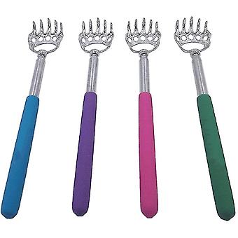 Product Description Portable,telescopic and extendable,it's a great scratching tools. Hit the spot with this compact telescopic back scratcher with its extendable handle.size 8inch to 22inch. These premium back scratchers made of heavy duty stainless steel, no bend no break, sturdy for years use. It is so convenient that you can take it with you anywhere. Use it at home, in the office and wherever you go. Metal Claw The claw size (L, H,W):1.64"X1.75"x0.5" Extendable It extends from 8" to 22" and easily fits into a pocket or purse. Rubber Grip Skid resistance. Great for women, men, kids, or gift to your friends family. Read more The Bear Claw back scratcher is safer than the real thing. Small enough to carry around easily, fit easily in your car, laptop bag, drawer, purse, etc. The set of 4 extended back scratcher, confusion of one person using the others back scratcher.Elegant Colour and Design. Read more Lengthened handle: tickle the back in different positions. Bear grasp design: smooth and round, no harm to the skin, comfortable to relieve itching. 4-Pack: good packaging, affordable.You can share with parents, relatives, friends, colleagues, neighbor. You can put it in your room, living room, study room, car, bag when anytime and anywhere you want to scratch your itch.