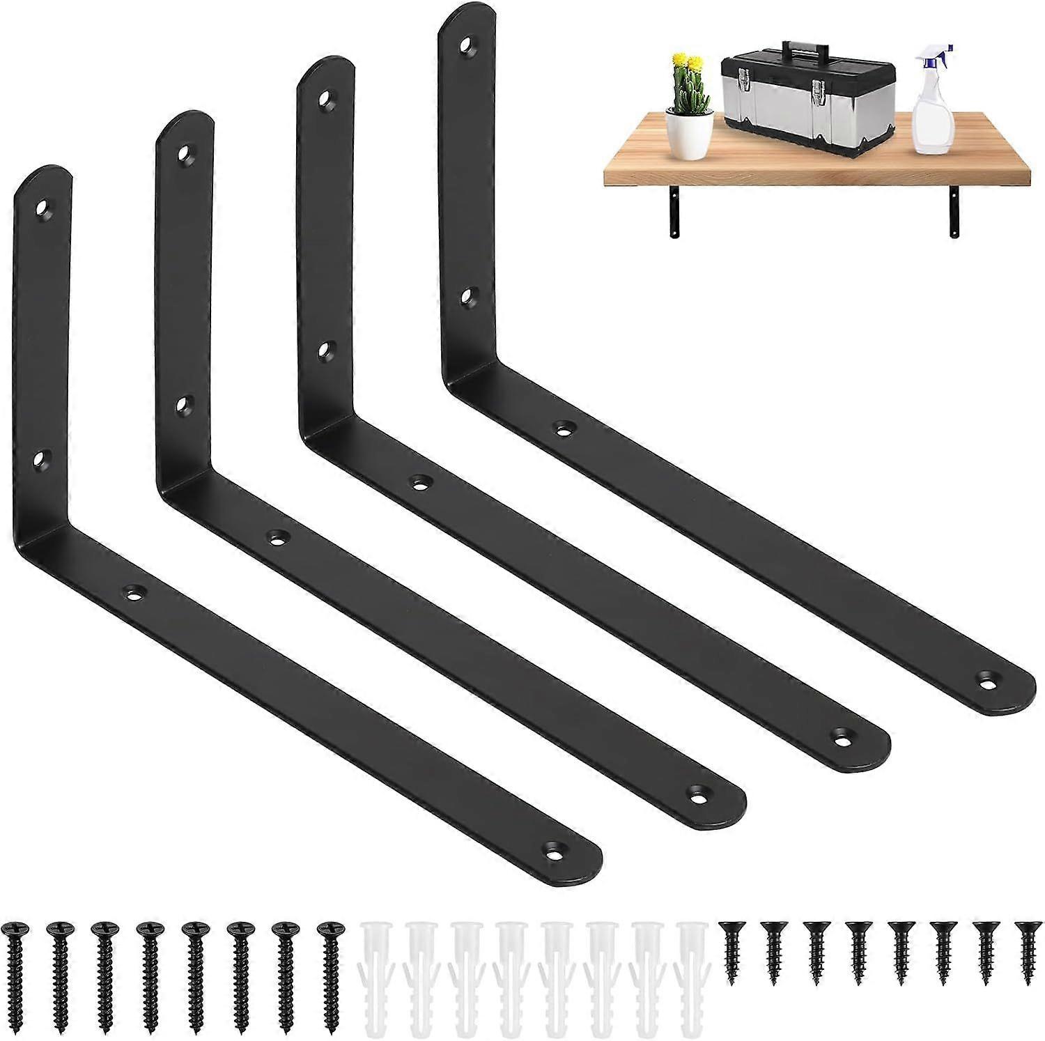 4 Pcs Black Shelf Brackets , Wall Mounted90 Degree L Shelf Support Bracket, Heavy Duty Wall Brackets for Shelves, Floating Shelve Bracket,9.84 x