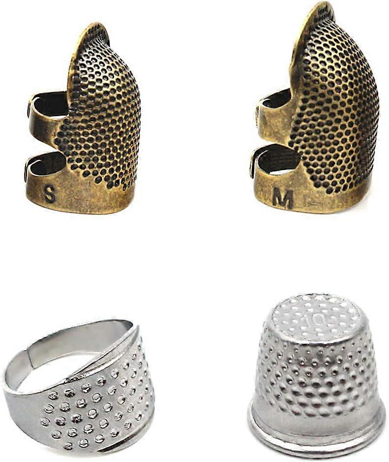 4 PCS Sewing Thimble Adjustable Finger Protector Ring - Metal Copper Finger Protector