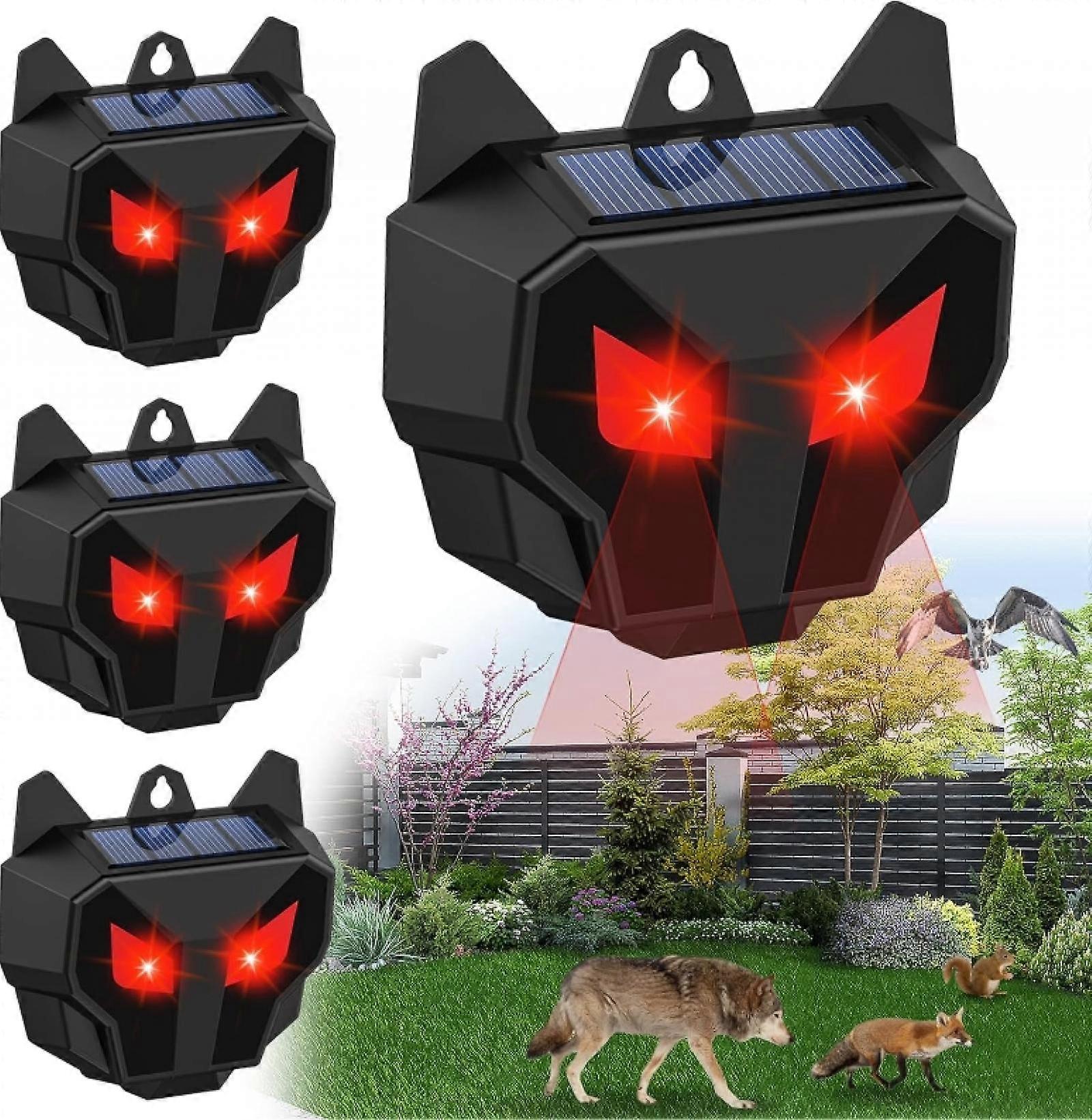 4 PCS Solar Animal Repellent, Red Light Deer Repeller, Waterproof Wild Night, Suitable for Predators, Chicken Coops, Cats, Skunks, Wolves, Deer 2024 N