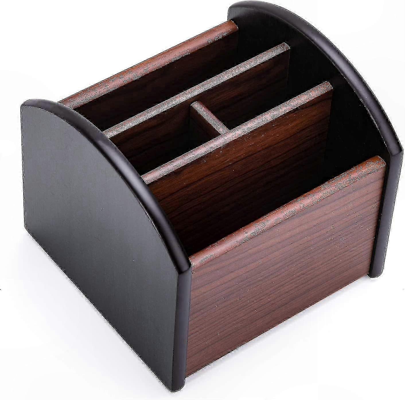 4-Section Wooden Desk Organizer for TV Remotes and Accessories Storage Solution