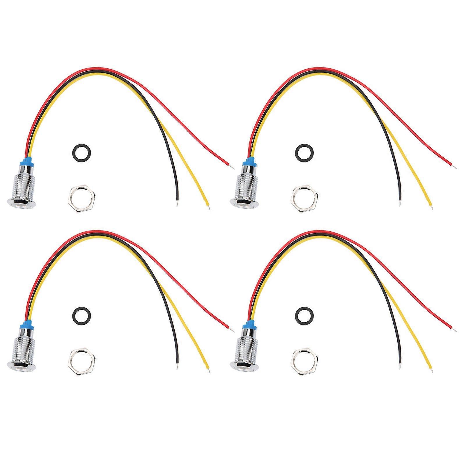 4 Sets PreWired Round LEDs Waterproof 2Color Indicator Light Common Anode 10mm 1224V(Red and Yellow )