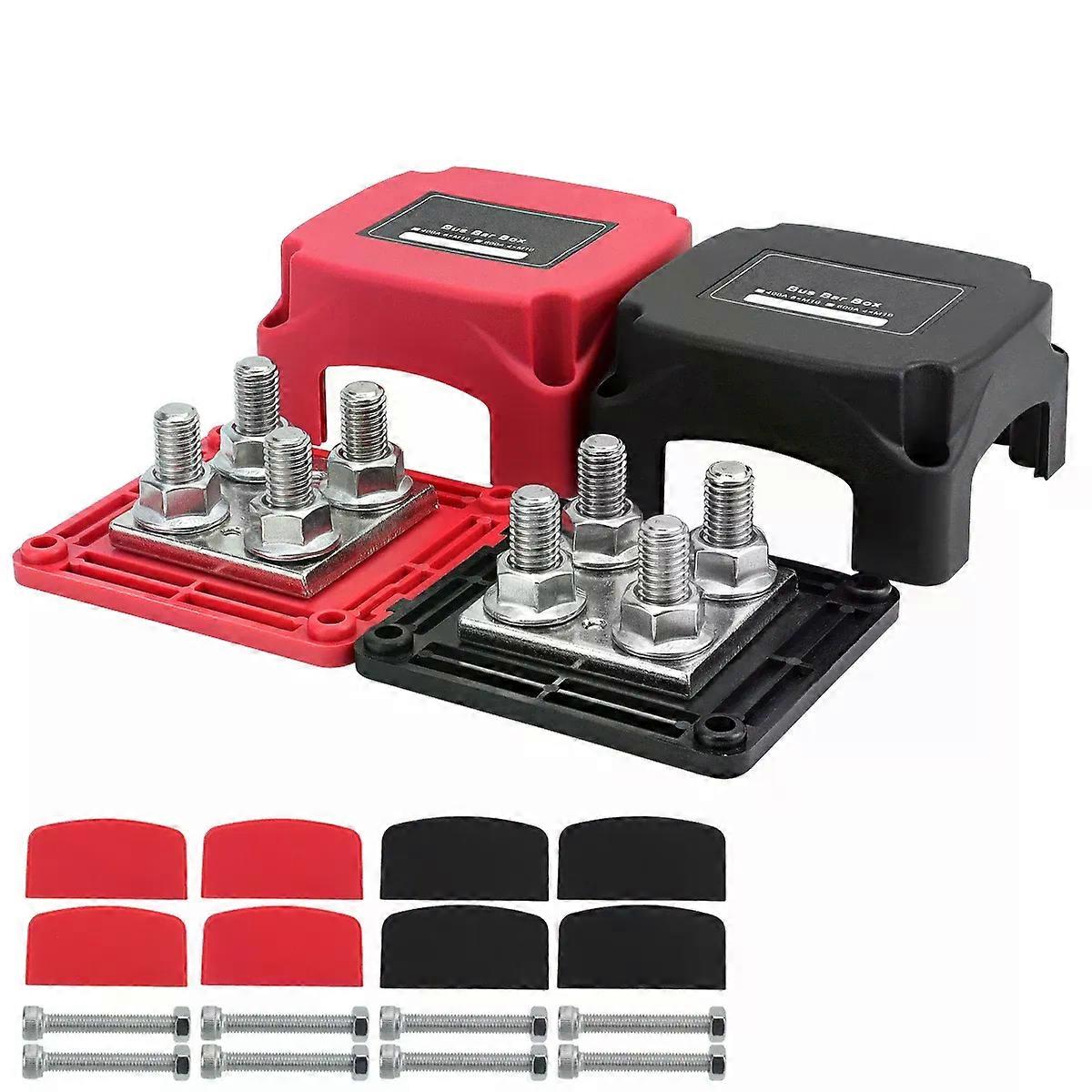 4 x 3/8 (M10) positive terminal and grounding busbar with cover suitable for marine car RV ship 12V-48V DC (black and red)
