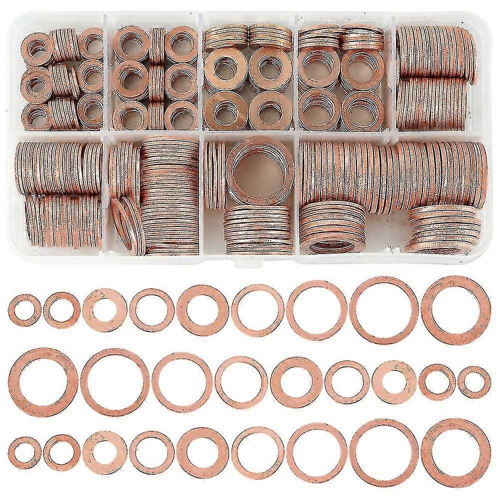 400 Pieces Copper Sealing Rings Copper Flat Washer Washer Copper Rings Sealing Ring Assortment Flat Sealing Ring Assortment Kit With Assortme