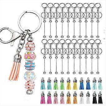 40Pcs Beadable Keychains Bars with Leather Tassel